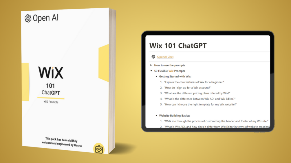 The Wix 101 ChatGPT prompt pack is your one-stop solution for enhancing your website creation skills on the Wix platform. This comprehensive resource is designed to equip you with expert prompts and tools that will help you become a master of website design and development with Wix.