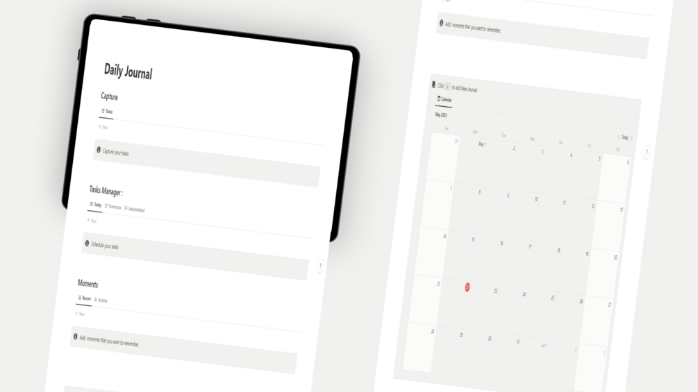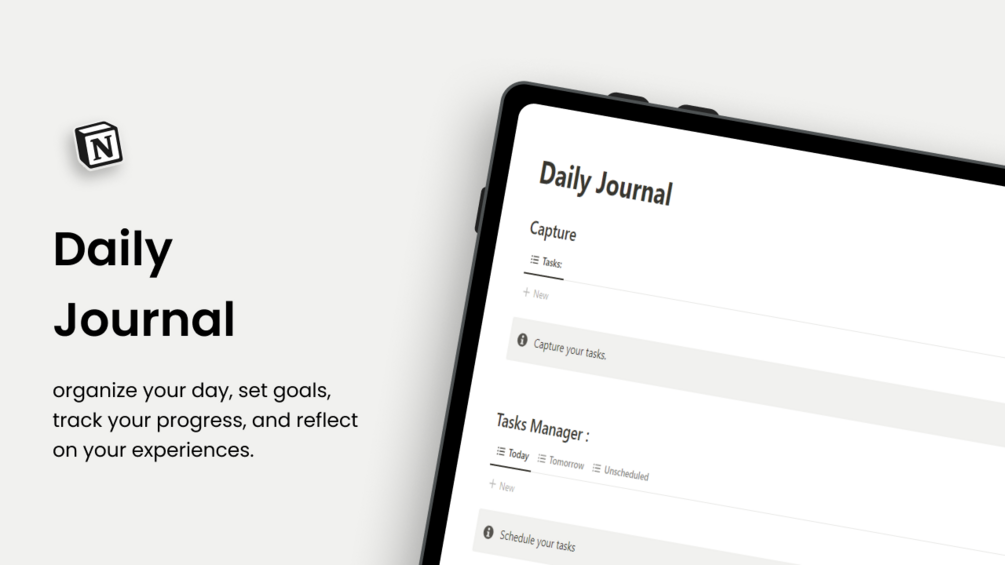 The Daily Journal Notion template is designed to help you organize your day, set goals, track your progress, and reflect on your experiences.
